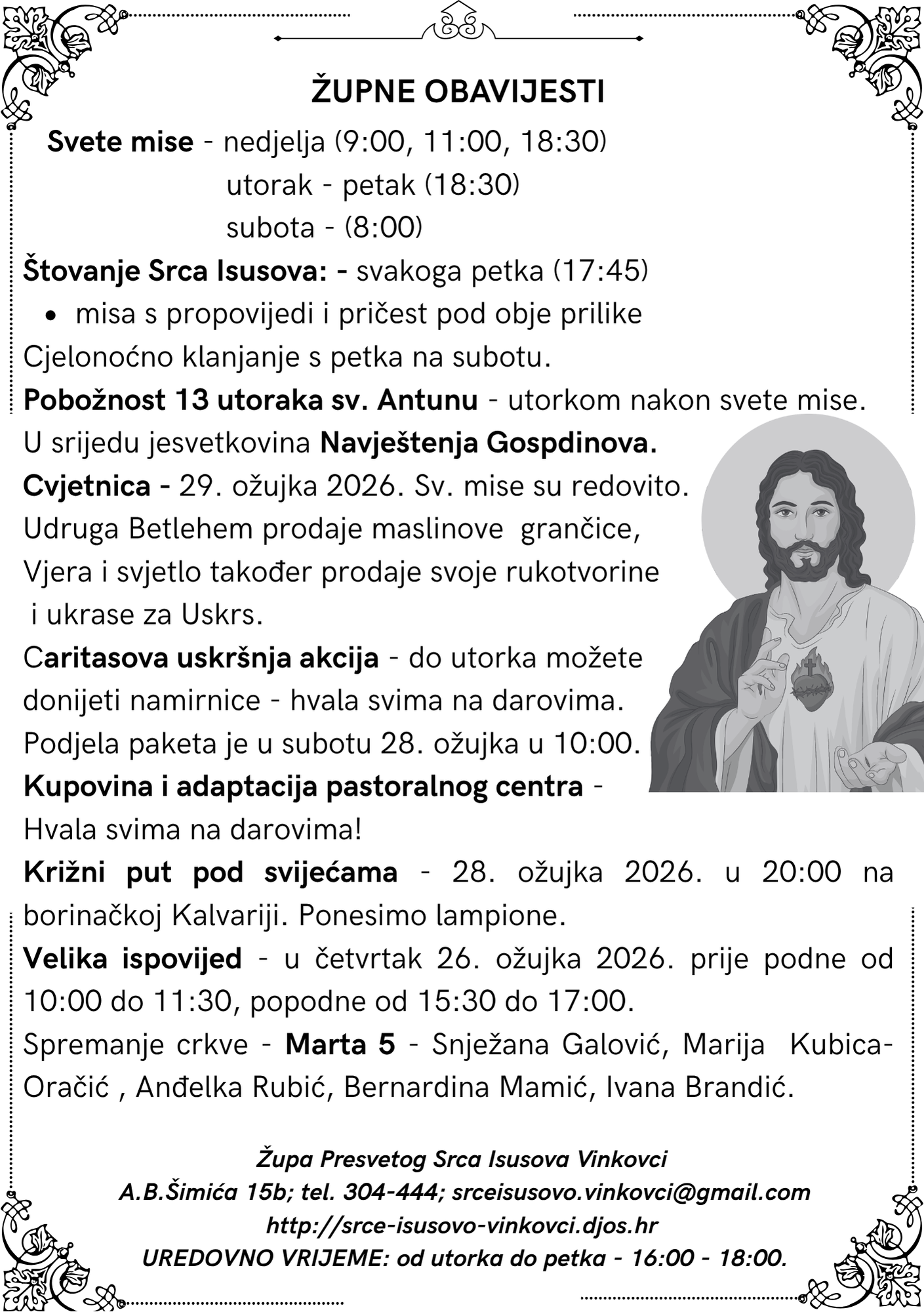 21 ožujka, 2026 Župa Presvetog Srca Isusovog
